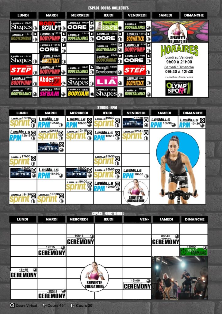 Retrouvez ici les horaires des cours collectifs et les formules d’abonnement proposées par Olymp’Sport. Accès libre, cours coachés, options sans engagement : choisissez ce qui vous convient, selon votre rythme et vos envies.